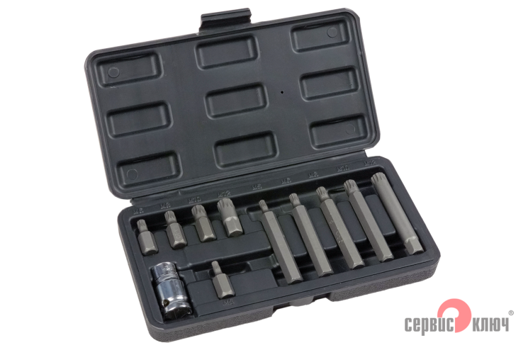 Набор бит (SPLINE) СЕРВИС КЛЮЧ (12 предметов) – это удобный набор, предназначенный для профессионалов и любителей. С помощью биты «сплин» вы можете откручивать/закручивать крепежные элементы различных изделий, устройств и агрегатов, например, шкив генератора многих марок автомобилей, например Ford, BMW и VW, еще в некоторых АКПП и вариаторах.